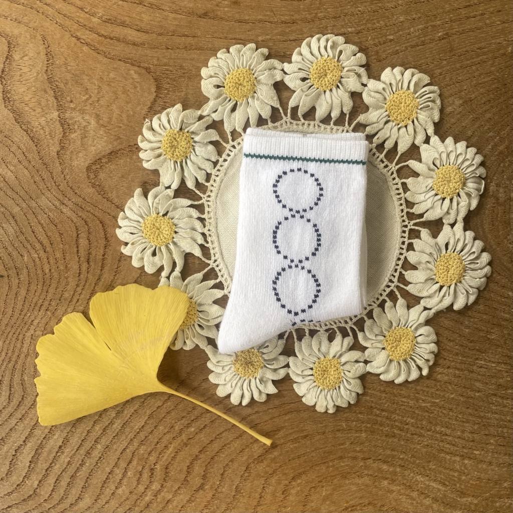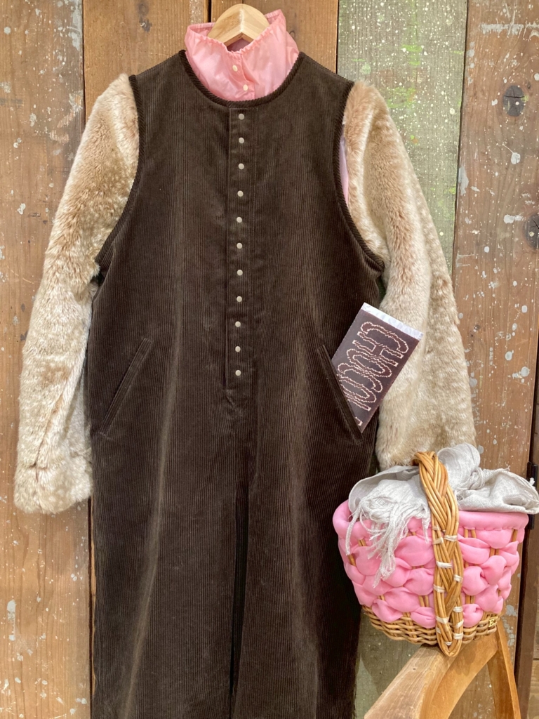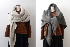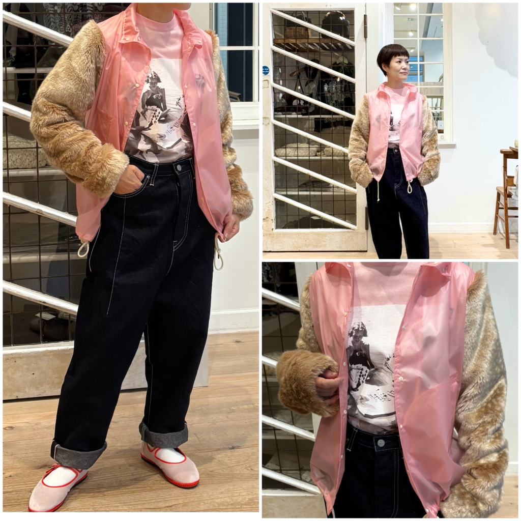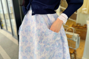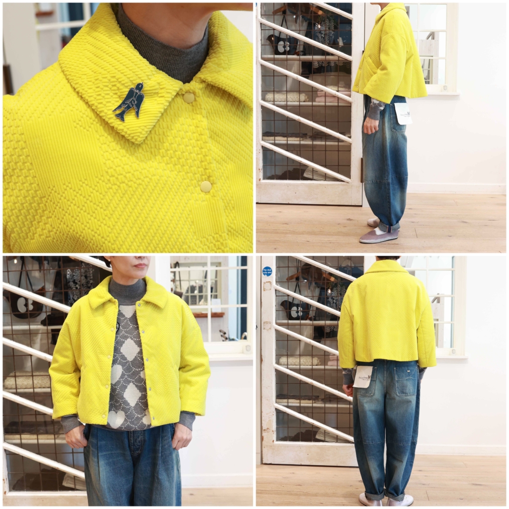 中に着用したトランプのモチーフに森の情景を映した“forest card(フォレスト カード)”のプルオーバーは、ジャカード編みのニットに、縫い留めた刺繍のモチーフが4つ浮かんでいます。