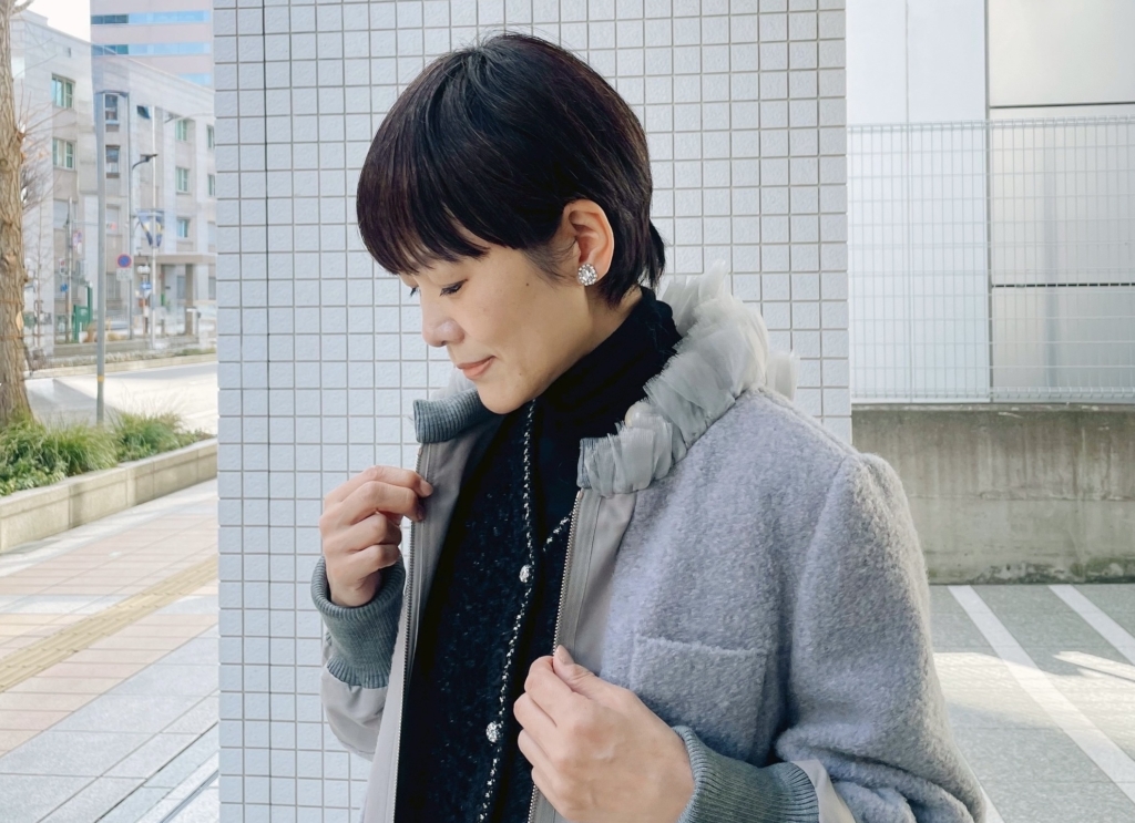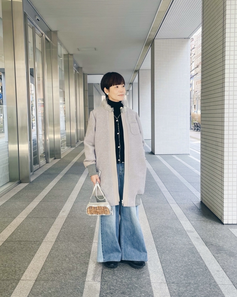 ジャケットと重ね着して春先のお出かけにも是非1枚取り入れたいです。♩