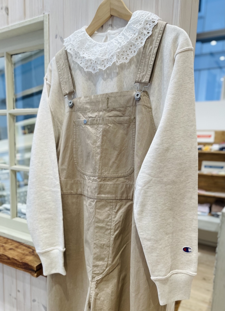 袖口のワンポイントを活かして、サロペットのインナーにしたり。