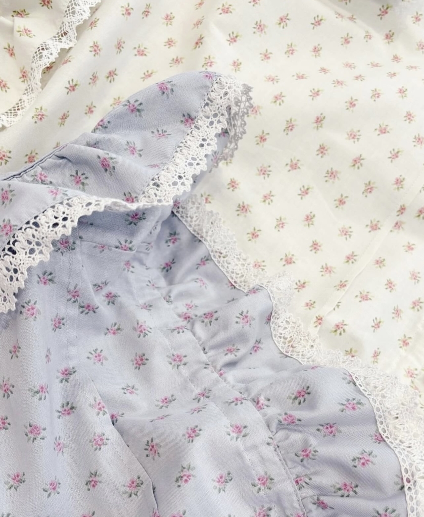 ソーワの最近入荷したばかりのブラウス。アンティークのピローケースのようなとてもかわいいブラウス。色違いのブルーにするか、こっちの色にするか、私はまだ悩んでます…。