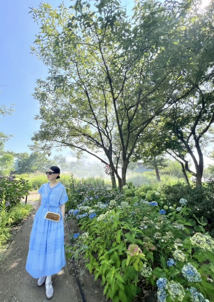 ワンピース・中に重ねているスカート・ソックス(アンティパスト)タンクトップ(ロサムンド)別注ショルダーバッグ(エバゴス)サンダル(メリッサ)イヤリング(タマス)ヘアピン(ルールロジェット)
