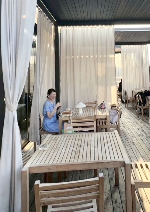 レストランのスタッフさんのユニフォームは、ミナ ペルホネンが担当しています。