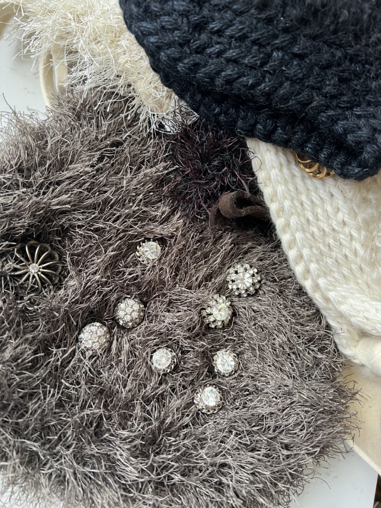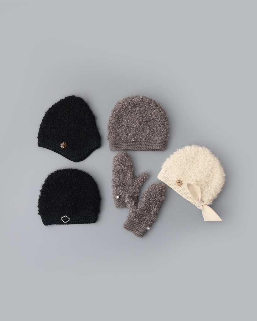 かれこれ24年くらい前、ミナ ペルホネンの展示会に3 ET DEMIでお取り扱いしていたヒトミシノヤマさんの帽子を被って行った事がありました。その帽子を見たミナのデザイナーの皆川さんが、「とても素敵なお帽子ですね。どちらの物ですか?」とおっしゃられたので、「お一人でされているブランドで、この展示会場のすぐそば(代官山)にアトリエがあるのでご連絡してみましょうか?」と言ってお電話して、その日のうちに3人でランチを食べることになり、翌年にミナ ペルホネン×ヒトミシノヤマデザインのお帽子が誕生しました。コラボのお帽子はミナ ペルホネンのファブリックを使用しているので、ヒトミさん自身のブランドとは少し趣きが変わります。私はライトグレー、ブラウン、ブラックを持っているので、今回はホワイトをオーダーしました。ミトンの色はまだ悩み中だけど、やっぱりホワイトがかわいいかなぁ〜。毛糸なので洗えるしホワイトにしちゃおかな。