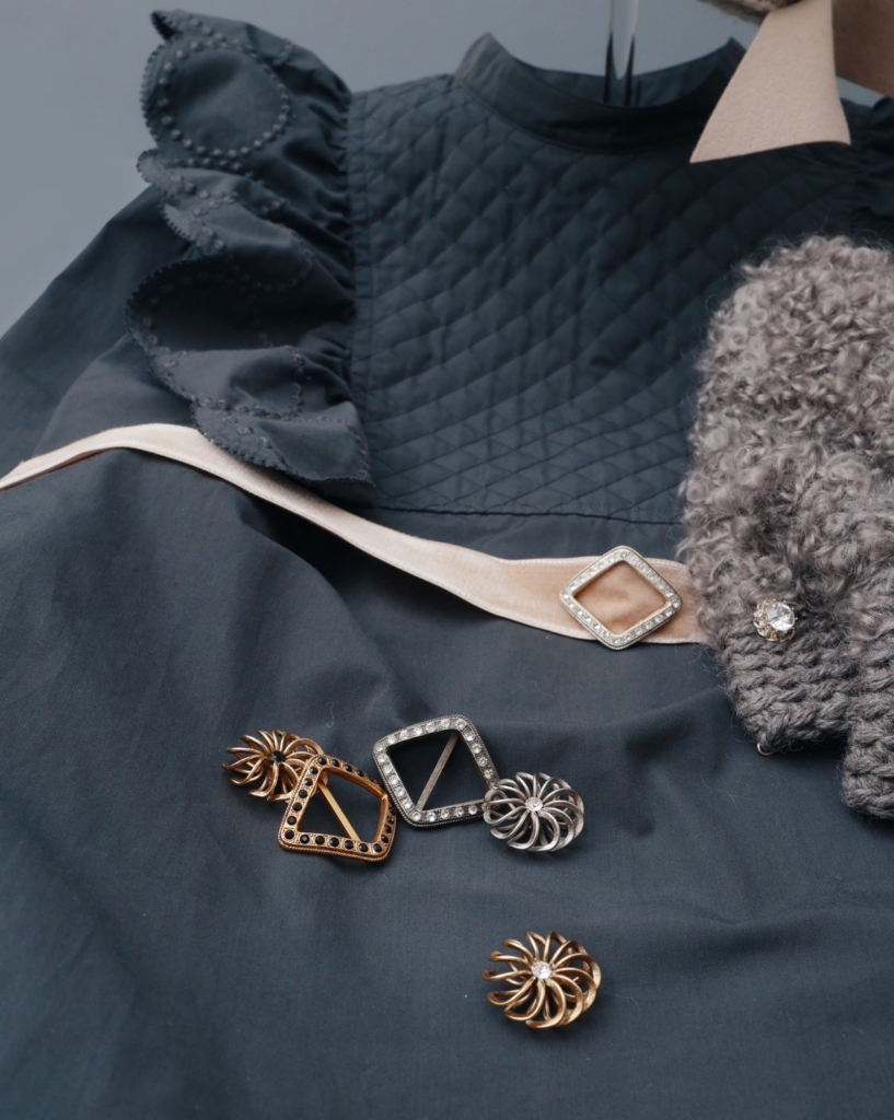 今日、入荷したヤブヤムのワンピースに付けてみました。クラシカルでとても素敵です。