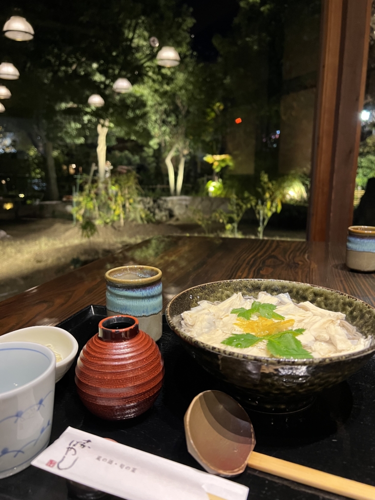 灘五郷の一つである、西郷のお蕎麦屋さん。私は温かい湯葉蕎麦にしました。