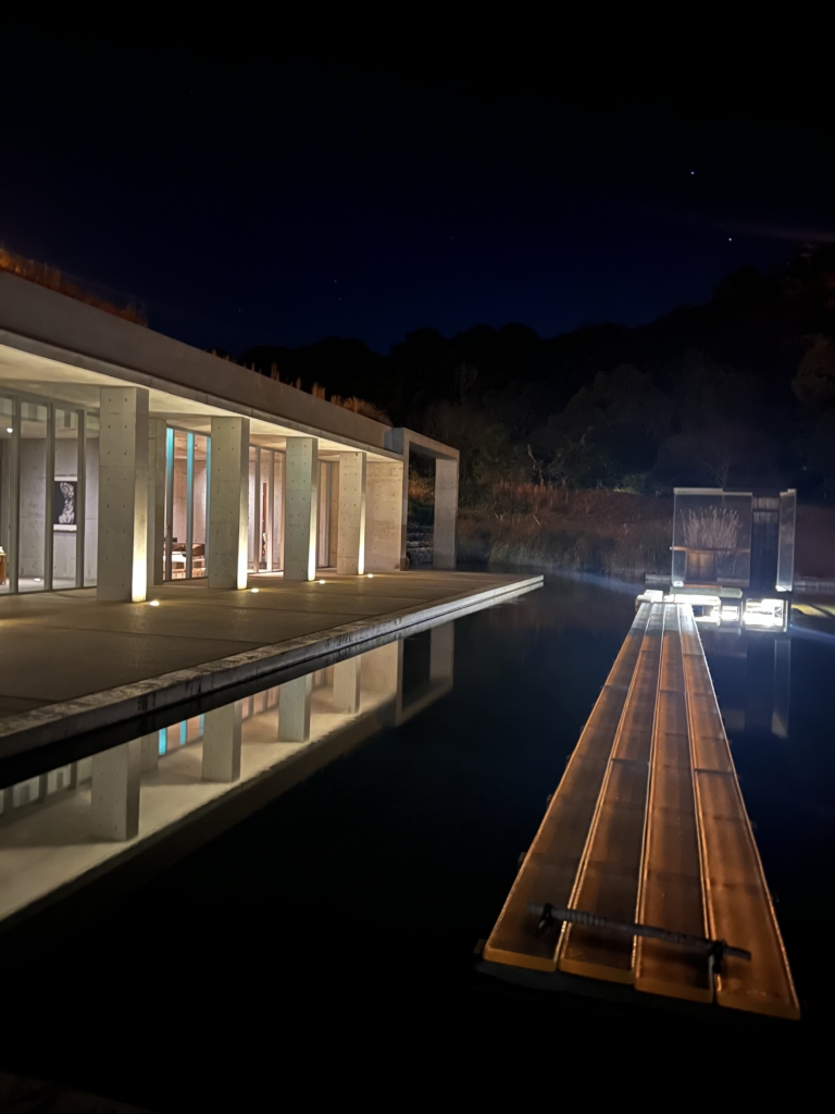 今回の旅の目的は、夕暮れ時と、翌朝の早朝、日の出の時間に合わせて地中美術館にあるジェームズ・タレルの作品、 “オープンスカイ” を静寂の中、45分間鑑賞するというイベントへの参加です。