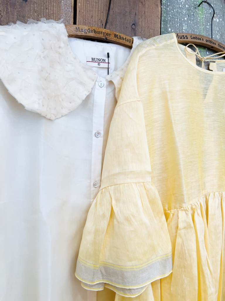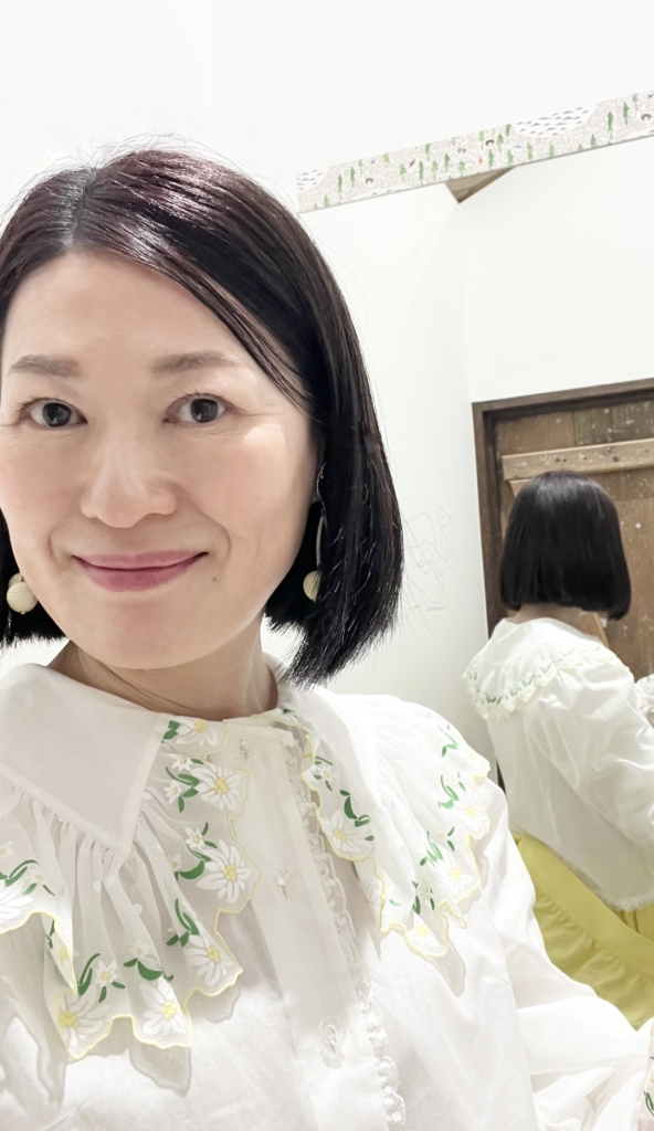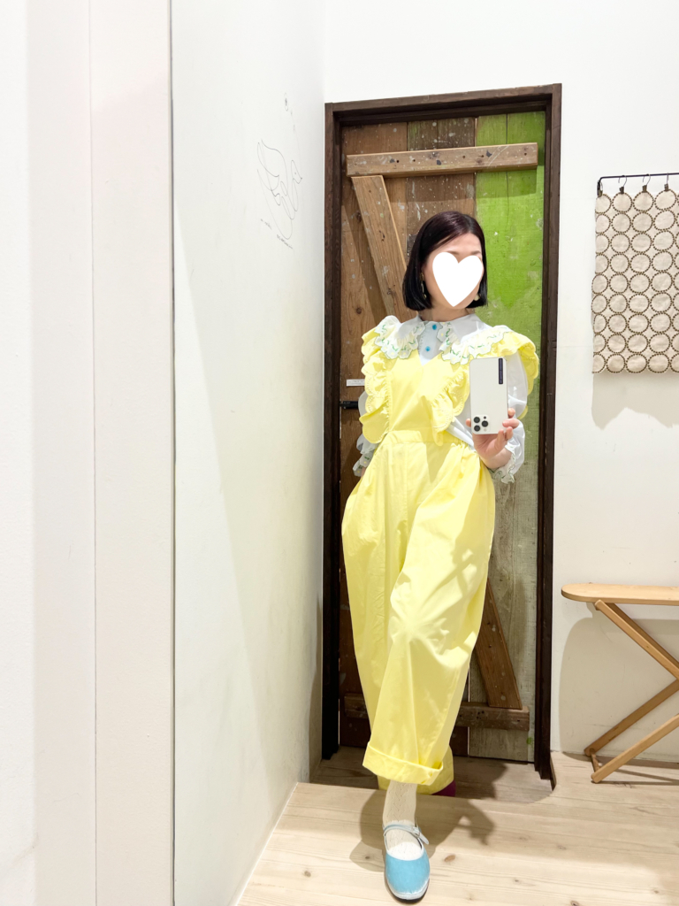 こちらのブラウスとサロペット、スタッフに、”絶対買うべき!” と激推しされて調子に乗って買ってしまいました。ブラウスは、ミナの薄いブルーのデニムとも合わせて着るつもり🩵